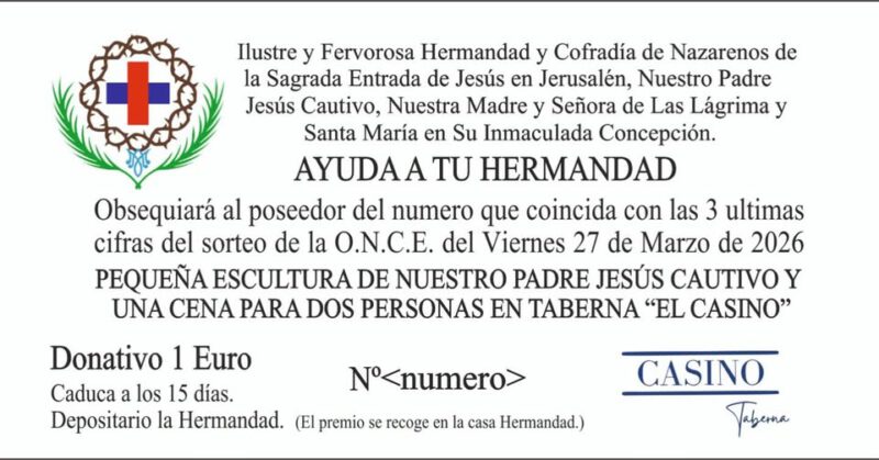 ILUSTRE Y FERVOROSA HERMANDAD Y COFRADÍA DE NAZARENOS DE LA SAGRADA ENTRADA TRIUNFAL DE JESÚS EN JERUSALÉN, NUESTRO PADRE JESÚS CAUTIVO, NUESTRA MADRE Y SEÑORA DE LAS LÁGRIMAS Y SANTA MARÍA EN SU INMACULADA CONCEPCIÓN