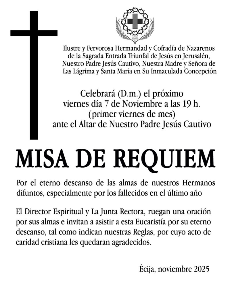 ILUSTRE Y FERVOROSA HERMANDAD Y COFRADÍA DE NAZARENOS DE LA SAGRADA ENTRADA TRIUNFAL DE JESÚS EN JERUSALÉN, NUESTRO PADRE JESÚS CAUTIVO, NUESTRA MADRE Y SEÑORA DE LAS LÁGRIMAS Y SANTA MARÍA EN SU INMACULADA CONCEPCIÓN