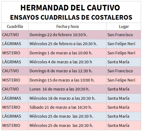 Las cuadrillas de costaleros de nuestros pasos comienzan con las igualás en las siguientes fechas: